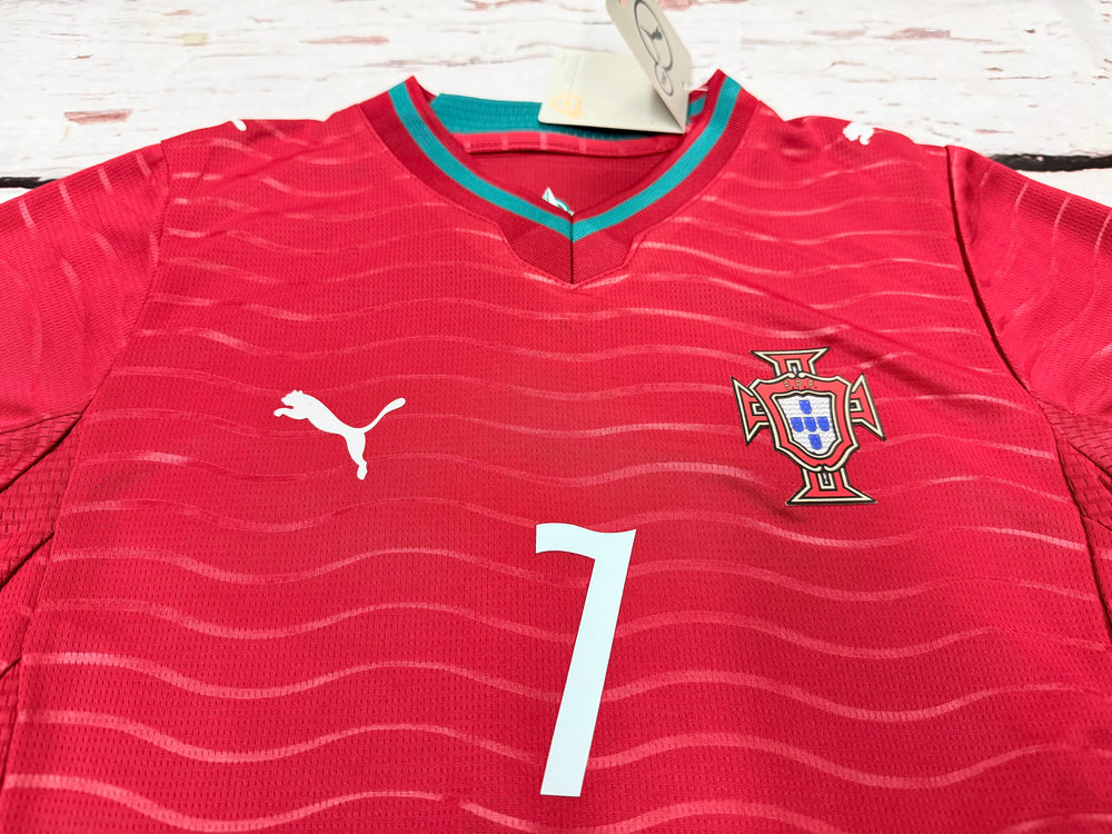 Support your favorite football legend with this Youth Cristiano Ronaldo Portugal 2026 Kids Soccer Kit. Designed for young fans and players, this complete set includes a breathable jersey and matching shorts inspired by the official national team home kit.